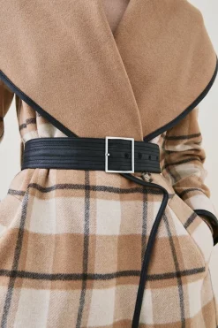Budget โ๏ธ Karen Millen Italian Wool Cashmere Check Belted Waterfall ๐งฅ Coat – multi ๐