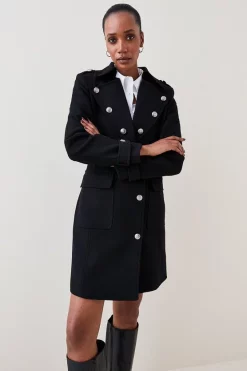 Top 10 ๐ฏ Karen Millen Italian Virgin Wool Military Button Midi ๐งฅ Coat – black ๐งจ