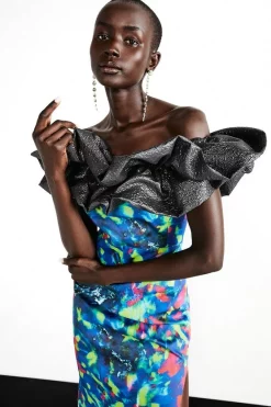 Brand new ๐ Karen Millen Weston Kaleidoscope Print Bardot Maxi ๐ Dress – blue ๐