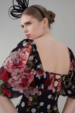 Flash Sale ๐ Karen Millen Spot Floral Chiffon Square Neck Ruffle Maxi ๐ Dress – multi ๐