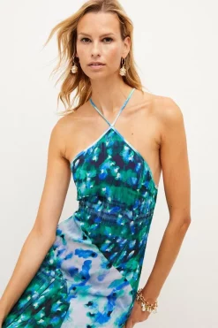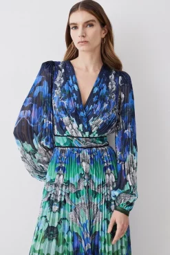Budget ๐ฏ Karen Millen Tall Mirrored Ombre Floral Pleat Drama Woven Midi ๐ Dress – blue โ