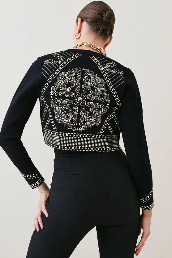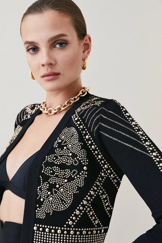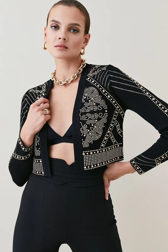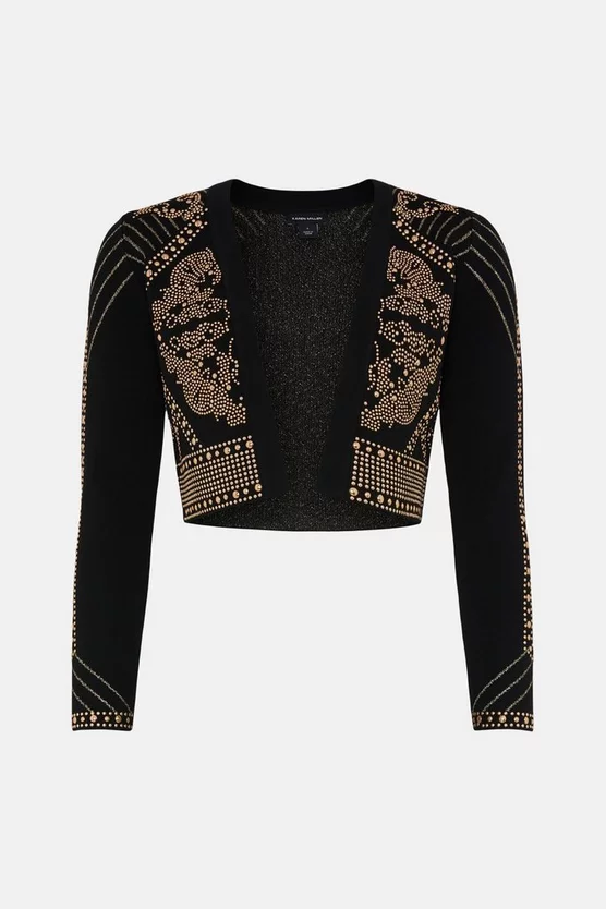 50% Viscose 44% Nylon $% Polyester 2% Metalised Fibre. Model wears Size S. Hand wash only.