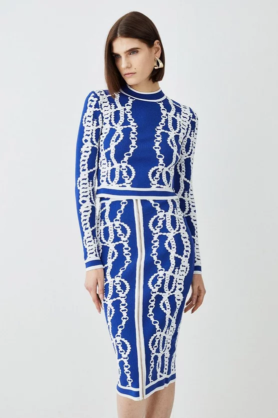 Brand new ⌛ Karen Millen Plus Size Mirrored Ombre Floral Pleat Drama Woven Midi 👗 Dress – blue 🛒