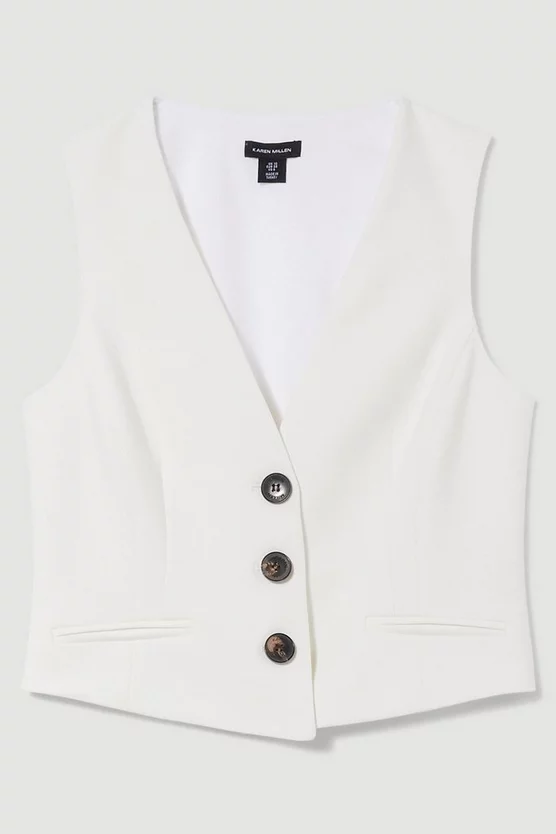 49% polyester 25% recycled polyester 19%viscose/rayon 7%elastane/spandex Lining: 100% polyester . Dry clean only Model Height 5”10 – Model wears a UK 8/US Size 6. centre back length 40cm