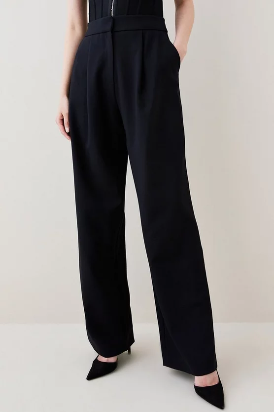 Showcase a penchant for proportional tailoring with this contemporary classic. Boasting a wide leg fit, these trousers are crafted in a compact stretch fabric for a comfortable yet stylish feel. Pressed creases add dimension to this office-ready piece, pair with the co-ordinating jacket for a sleek finish.