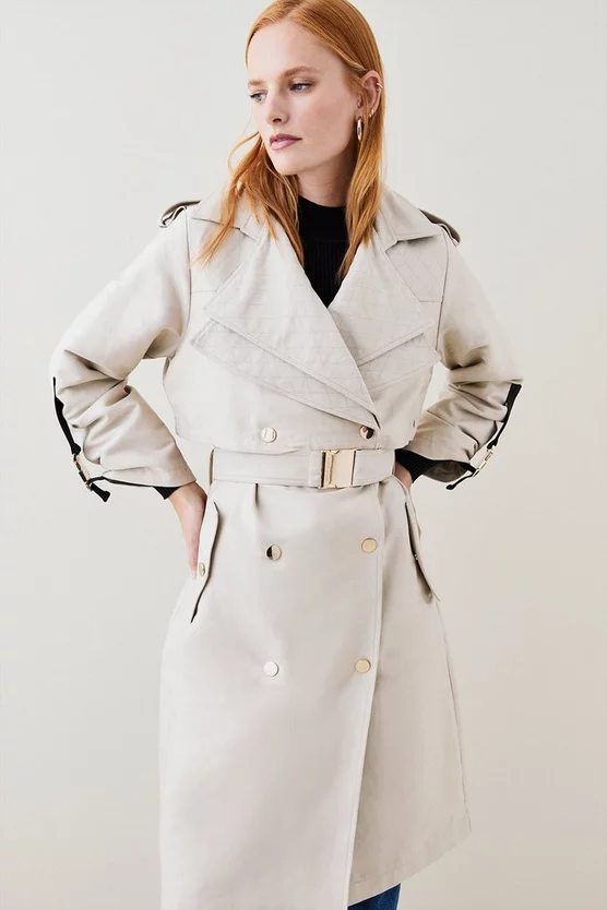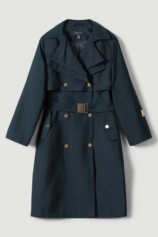 Showcasing a classic silhouette with intricate details, this trench coat makes a sophisticated choice for a multitude of occasions. A storm flap, military belt details, notched lapels and shoulder epaulettes give this piece a premium feel, while classic flap pockets offer practicality.