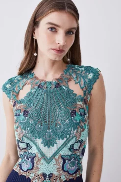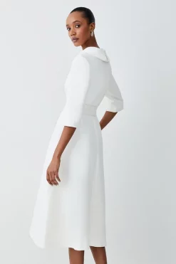 Trimmed with light-catching crystals, this sleek jacquard swing dress nods to the 1960s with its bold geometric print. Fitted to the figure at the top and flaring out at the hem, it effortlessly elongates the legs and pairs perfectly with chunky platforms.
