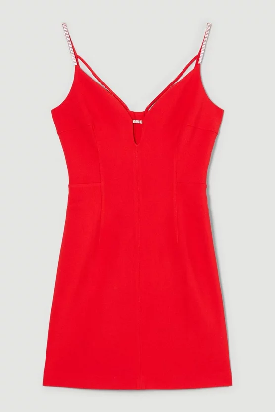 Scintillating with crystal embellishments, this contemporary mini dress appears with sculptural aplomb. From the cutaway sweetheart neckline to the structural fit, pair with elevated stilettos to offset the silhouette.