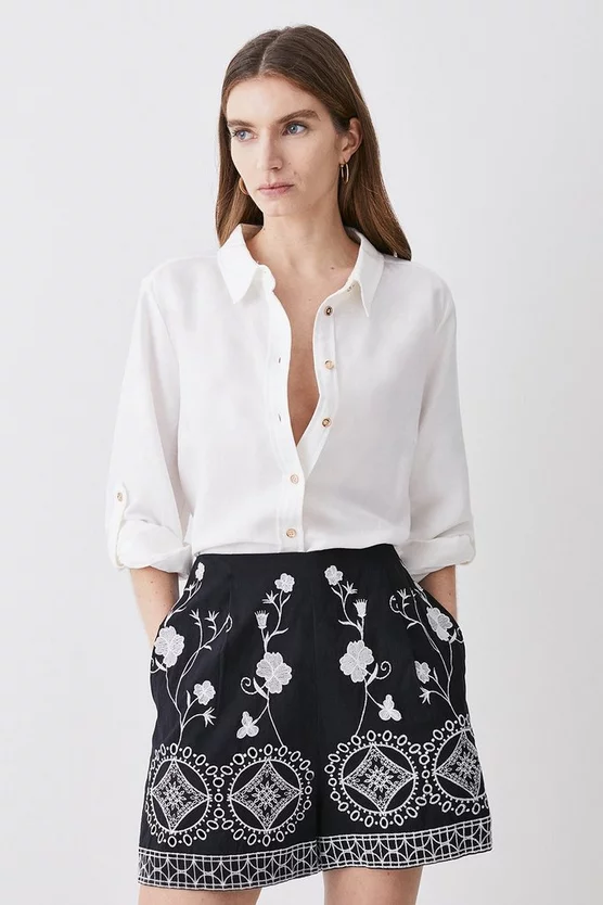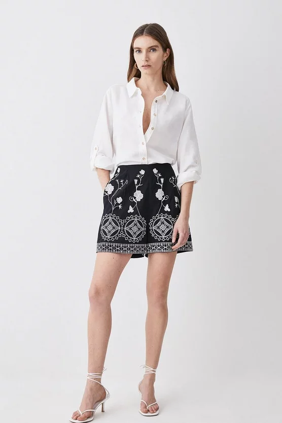 100% polyester. Gentle machine wash at 30 with similar colours. Model Height 5”10 – Model wears a UK 8/US Size 6.
