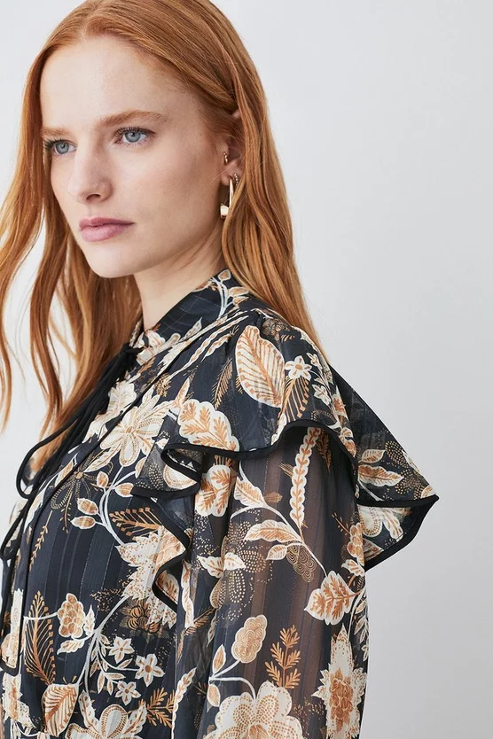 Buy โจ Karen Millen Lydia Millen Border Cotton Sateen Woven Midi ๐ Dress – floral โ๏ธ