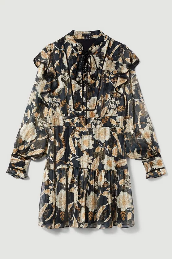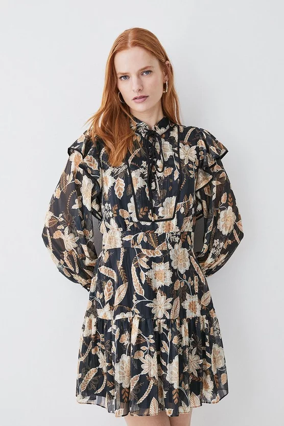 Coupon ๐ Karen Millen Mirrored Ombre Floral Pleat Drama Woven Mini ๐ Dress – blue ๐คฉ