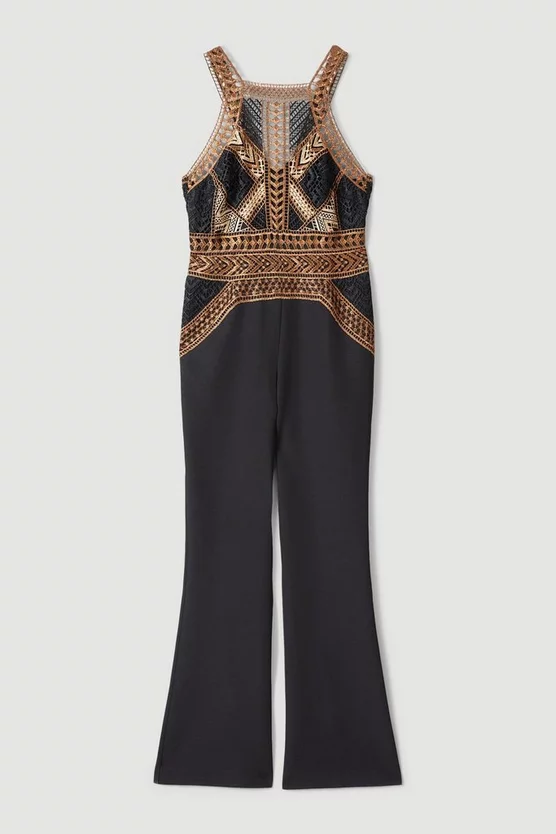 Cheapest โญ Karen Millen Metallic Guipure Lace Placed Floral Pleat Midi ๐ Dress – black โจ