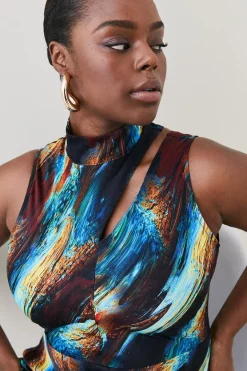 Enhanced with an abstract print, this slinky knit top adds a contemporary touch to your ensemble. Style this long-sleeved piece with a leather maxi skirt for an impactful look, or jeans for a laid-back outfit.