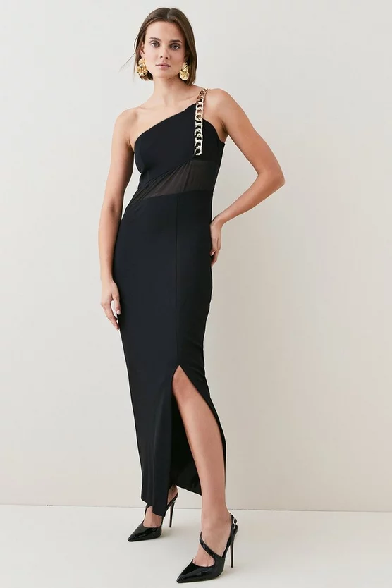 - Asymmetric one-shoulder neckline