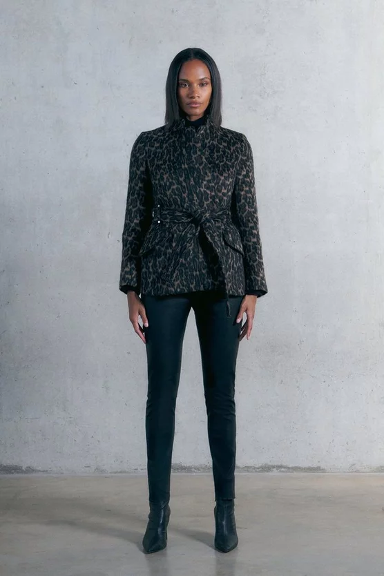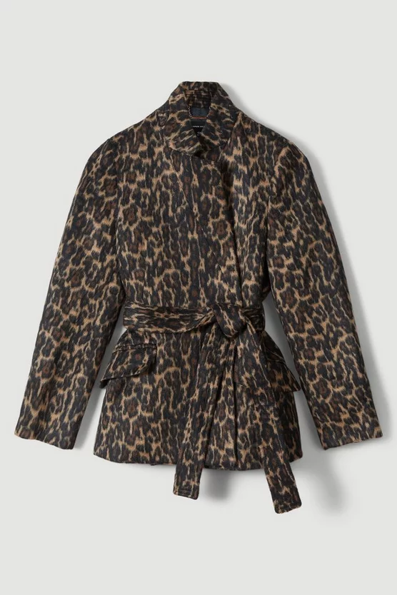Crafted with a subtle leopard print motif, this jacquard jacket adds a suave touch to casual styling.