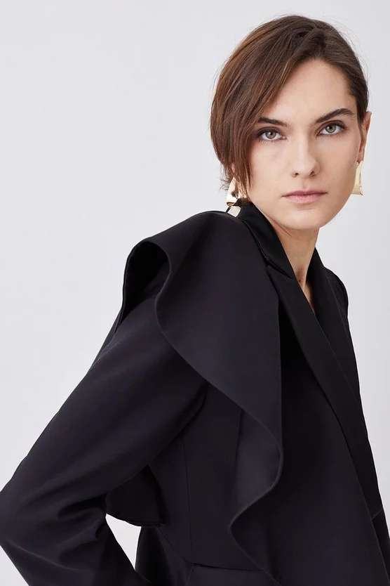 Main: 76% Viscose, 22% Virgin Wool, 2% Elastane. Lining: 100% Polyester. Dry clean only. Model wears UK 8/US 4. Model height: 5″9. Length measurement: 57cm.