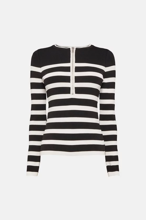 This top proves you cant go wrong with stripes. Timeless in style, this eye-catching piece features a bold monochrome pattern and an exposed front zip.