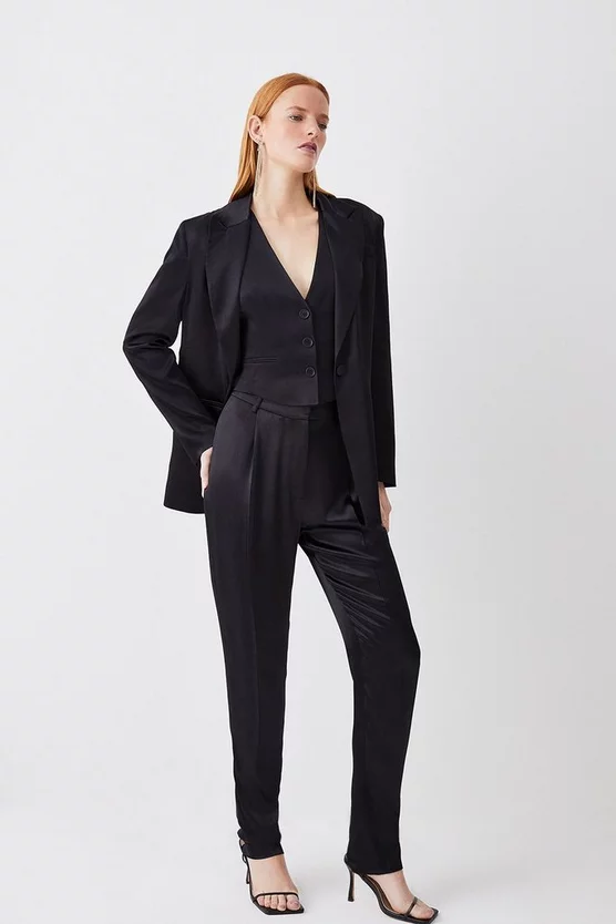 Hot Sale 💯 Karen Millen Stretch Cady Tie Belt Blazer Mini 👗 Dress – black ✨