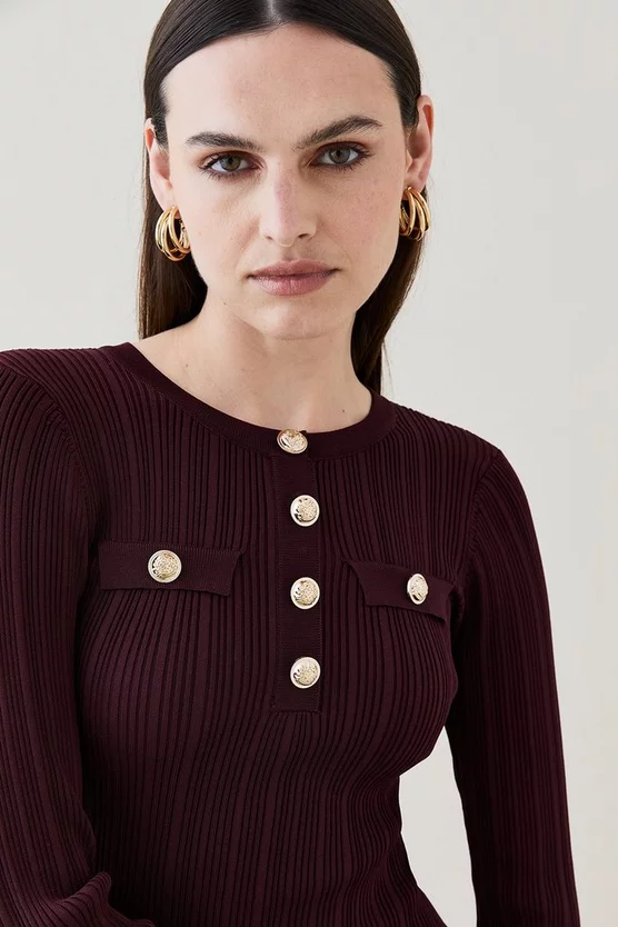 Sculpted with modern mastery, the military-imbued detailing on this mini dress will have the crowd standing to attention. Defined by embossed hardware, it boasts a tactile ribbed composition that traces the form with contouring aplomb.