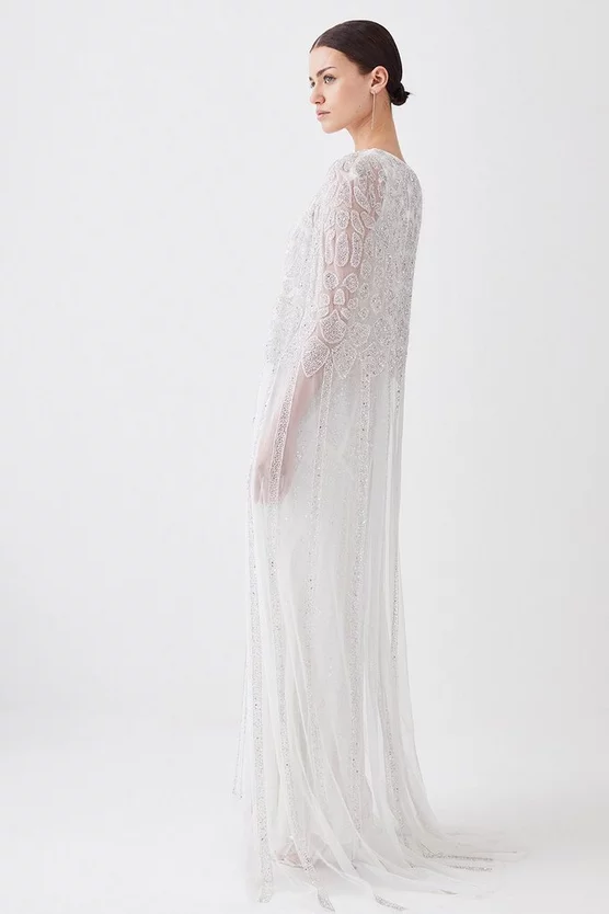 100% Polyester, Lining 100% Polyester. Gentle machine wash at 30 with similar colours. Model Height 5”10 – Model wears a UK 8/US Size 6. Centre back length 135cm.