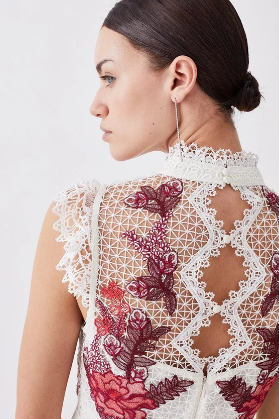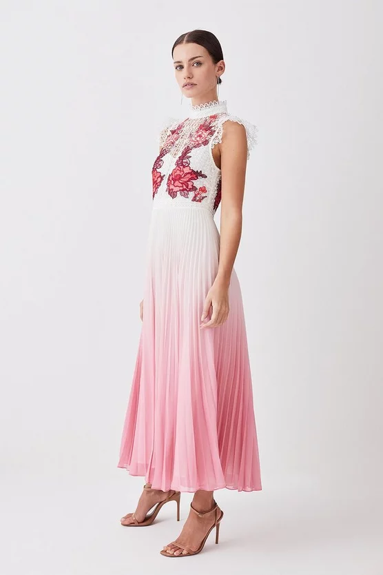 Discount 🎁 Karen Millen Floral Pleated Corset Woven Maxi 👗 Dress With Detachable Cape ❤️