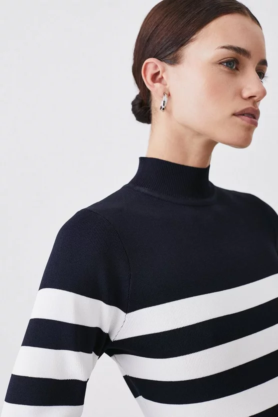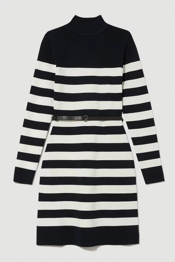Flash Sale 😍 Karen Millen Tall Stripe Rib Knit Belted Mini 👗 Dress ✨
