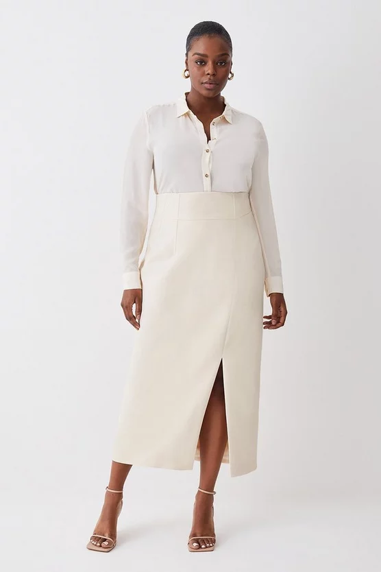 Main: 33% Polyester, 31% Viscose, 30% Recycled Polyester, 6% Elastane. Lining: 100% Polyester. Dry Clean Only. Model wears UK 18 US 16. Length Approx: 100cm