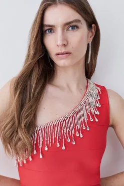 Best Sale 🛒 Karen Millen Bandage Diamante Trim One Shoulder High Low Midi 👗 Dress – orange ❤️
