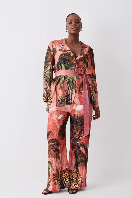 Outlet ⌛ Karen Millen Plus Size Satin Palm Printed Woven Trousers – orange 👍