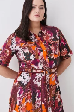 Deals ⌛ Karen Millen Plus Size Tropical Floral Premium Linen Woven 👕 Shirt 👗 Dress – orange 🌟