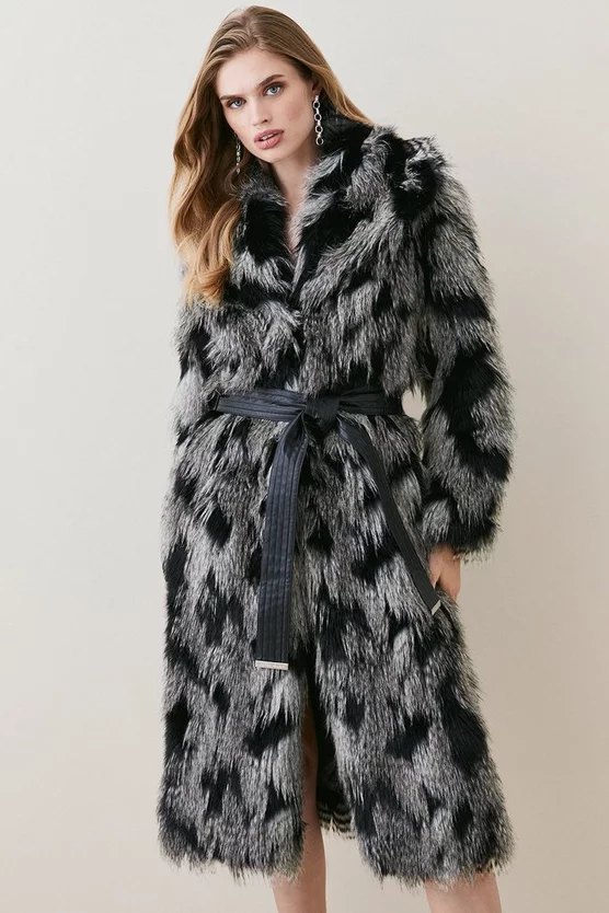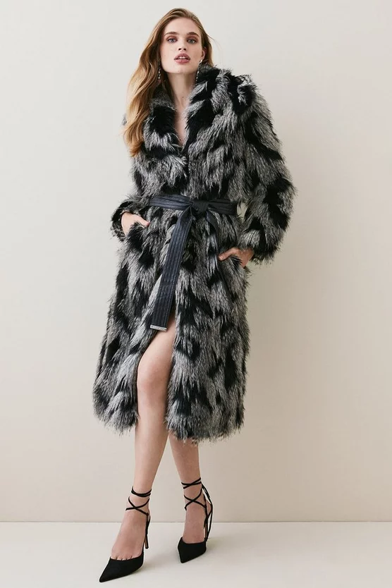 Faux Fur: 73% Modacrylic, 16% Polyester, 11% Acrylic. Lining: 100% Polyester. Remove Belt Before Cleaning. Do Not Dry Clean. Model wears UK 8/US 4. Model height: 5″9. Length measurement: 117cm.