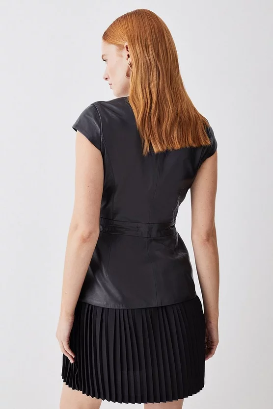 Main: 100% responsibly sourced Leather , Lining:100% Polyester. Specialist Dry Clean Only. Model wears UK size 8/ US size 4.