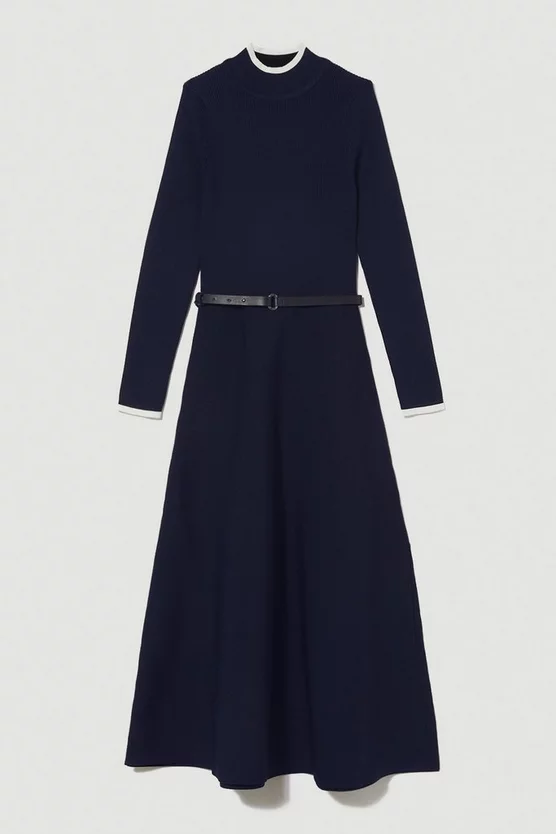 Best Sale 😍 Karen Millen Plus Size Rib Knit Belted Midi 👗 Dress – navy ❤️