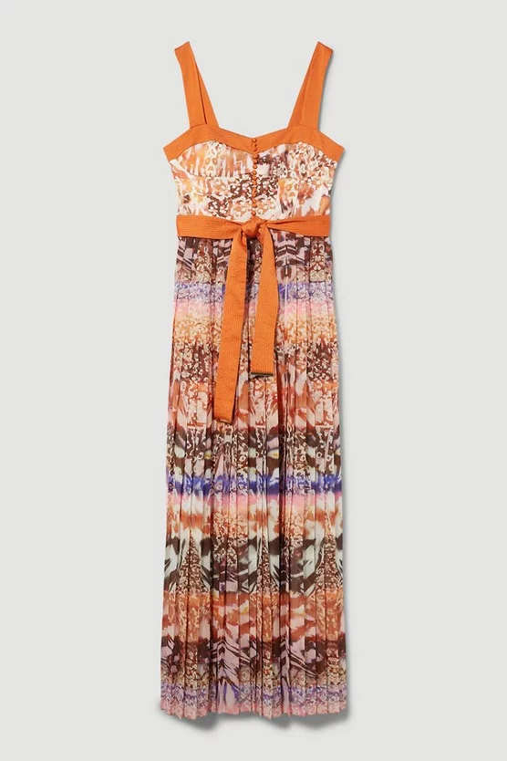 100% Polyester, Lining 97% Polyester, 3% Elastane. Gentle machine wash at 30 with similar colours. Model Height 5”10 – Model wears a UK 8/US Size 6. Centre back length 130cm.