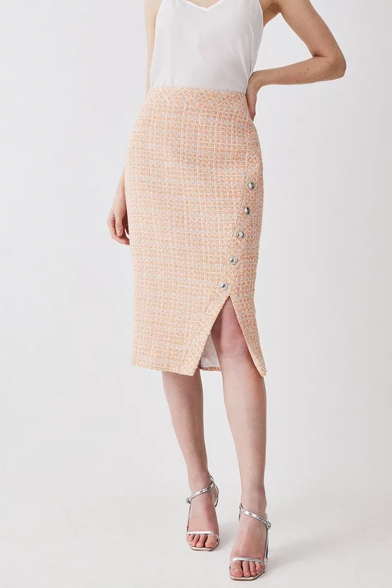 Main: 39% Acrylic, 20% Polyester, 20% Recycled Polyester, 16% Metallised Fibre, 5% Viscose. Lining: 100% Polyester.Dry Clean Only. Model wears UK size 8/ US size 4. Model height Approx: 5″9. Length Approx: 74cm.