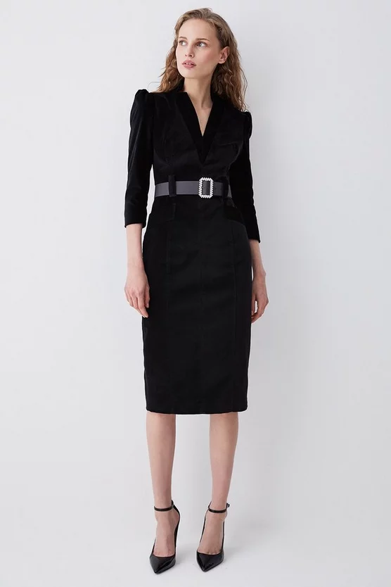 Best Sale 🔥 Karen Millen Plus Size Compact Stretch Lace Up Forever Midi 👗 Dress – black 🛒