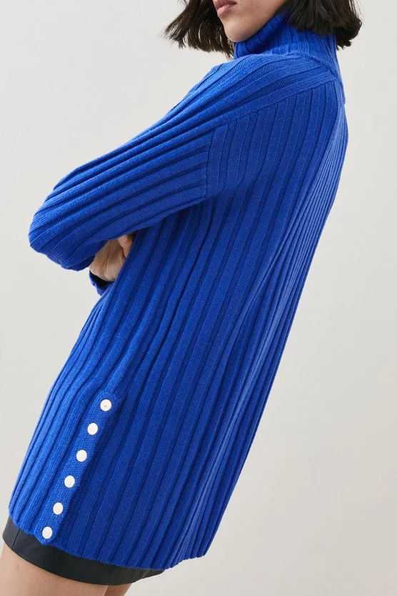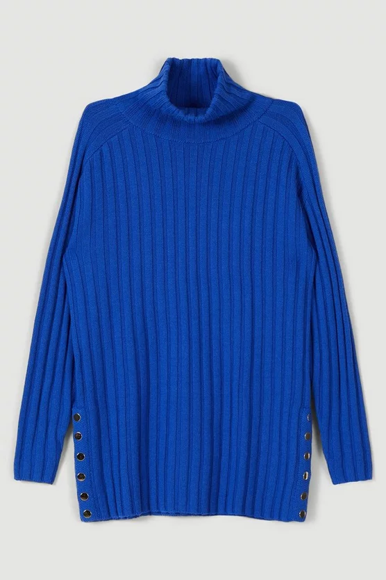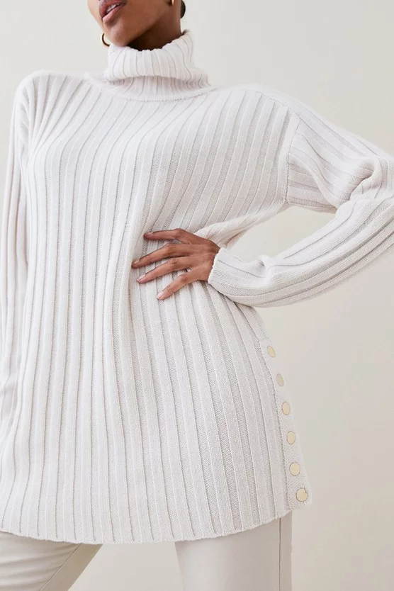 Keep it snug with this ribbed rollneck jumper. Cut in an oversized silhouette, it shows off side buttons that lend it a refined twist. Pair it with your favourite skinny trousers and heels for a polished look.