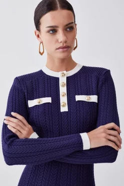 Wholesale 🎉 Karen Millen Petite Slinky Jacquard Full Sleeve Knitted Maxi 👗 Dress – dark green ⭐