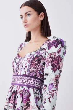 Budget โญ Karen Millen Petite Lydia Millen Border Cotton Sateen Woven Midi ๐ Dress – floral ๐ฅ
