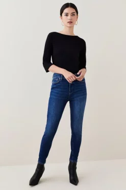 Flash Sale ⌛ Karen Millen Petite Cotton Slash Neck 3/4 Sleeve Top 🔔