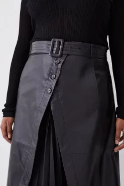 Deals โจ Karen Millen Plus Size Leather Belted Pleat Detail Midi ๐ Skirt – black ๐