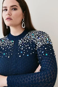 Hot Sale ๐ Karen Millen Plus Size Crystal Embellished Stitch Knit Mini ๐ Dress – ink ๐งจ