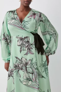 New โ๏ธ Karen Millen Plus Size Belted Viscose Blend Long Sleeve Jersey Midi ๐ Dress ๐