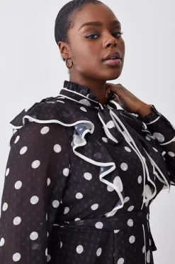 Top 10 👏 Karen Millen Plus Size Mono Mixed Dot Piped Ruffle Georgette Midi 👗 Dress 😍