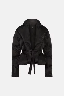 Best Sale 🥰 Karen Millen Italian Structured Satin Statement Sleeve Double Breasted Mini 👗 Dress ⭐