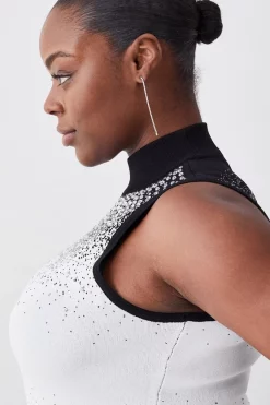 Best deal 🎉 Karen Millen Plus Size Hotfix Sequin Knit High Neck Jumper – mono ✔️