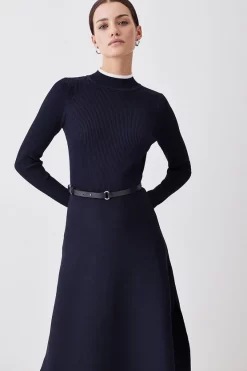 Promo 👏 Karen Millen Tall Rib Knit Belted Midi 👗 Dress – navy 😀