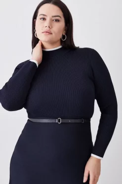 Best Sale 😍 Karen Millen Plus Size Rib Knit Belted Midi 👗 Dress – navy ❤️