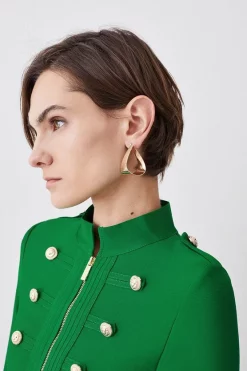 New 🔔 Karen Millen Long Sleeve Military Trim A-line Bandage Knit Mini 👗 Dress 😀