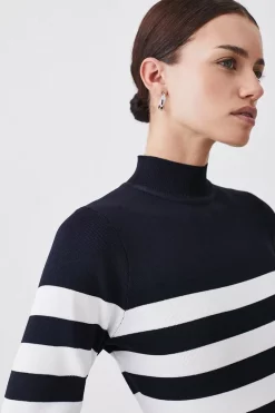 Best Pirce 🤩 Karen Millen Petite Stripe Rib Knit Belted Mini 👗 Dress 😉